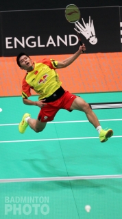 Chinese men’s singles player Tian Houwei (pictured left) came through despite a first game scare against Zi Liang Derek Wong. The 2013 Australian Open champion fought hard after losing the first game 21-14 to reverse the score and then hurry through taking the deciding game 21-10.
