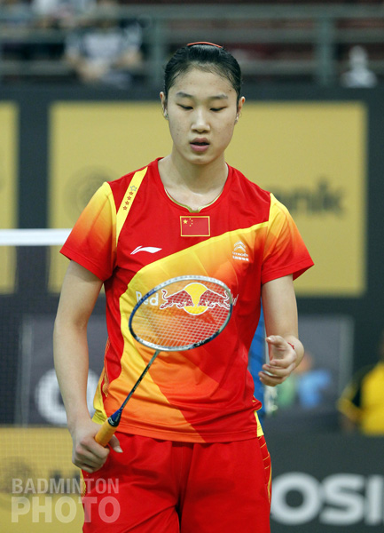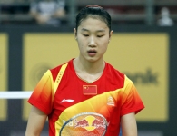 Wang Xin, former world number 1, also lost today – ousted by Czech Republic player Kristina Gavnholt (pictured right). Wang offered little resistance in the first game as the Czech controlled the game, taking the end 21-14.