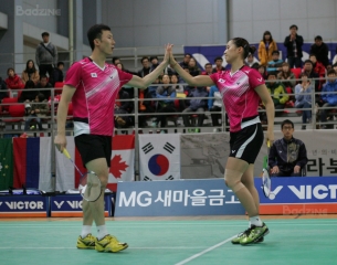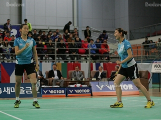 Though Korea’s top pair Kim Ki Jung / Kim Sa Rang had already tasted international success at the Grand Prix Gold and Superseries level, they have several times been denied victory at home in close matches with their team-mates. Most notably, they had to settle for silver last year in Hwasun while the then new pairing of Ko Sung Hyun and Lee Yong Dae took the honours.