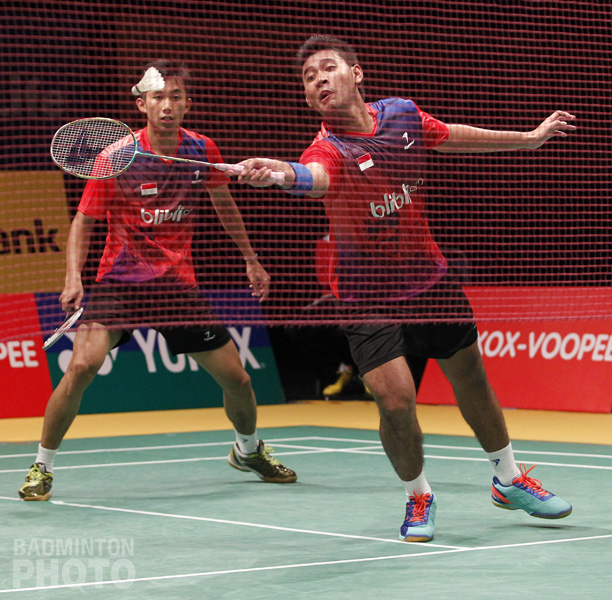 Four years after the last time a Malaysian men’s doubles pair made it into the finals of the home ground event, Goh V Shem / Lim Khim Wah (pictured top) beat Angga Pratama / Ryan Agung Saputra (pictured), and marched into their first ever Superseries finals, all while finally planting a Malaysian flag in the men’s doubles finals at home after a three-year hiatus.