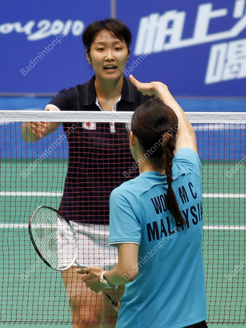 However that difference wasn’t visible on court in the first set. The latter clung to their much higher ranked opponents for most of the set, but had to accept defeat nonetheless 22-20. At 12-12 in the second set, five points in a row were enough for Biao and Wei to secure the victory 21-14.