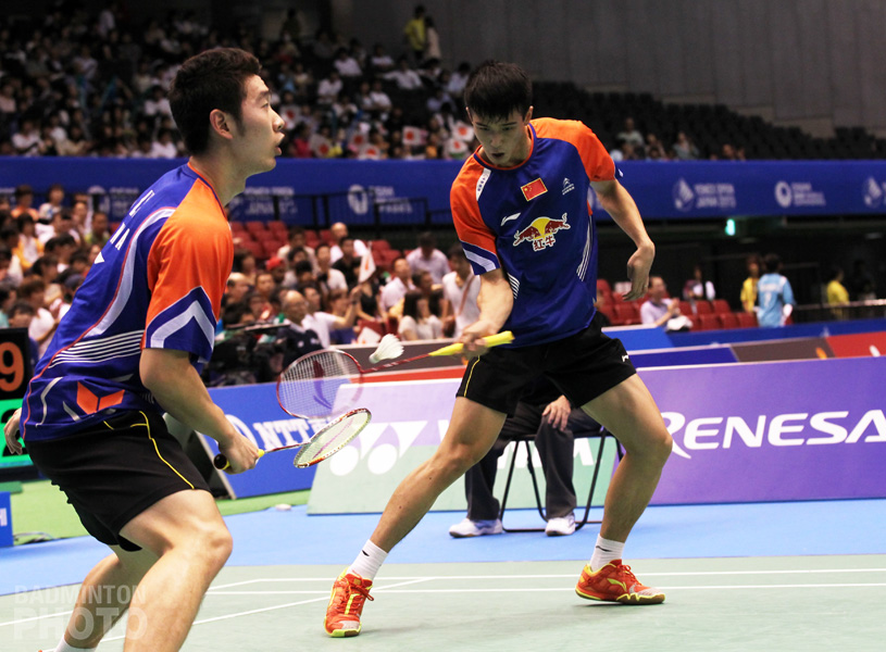 London Olympic Silver medallists Mathias Boe / Carsten Mogensen, who are usually too strong at this point in time for Tan Boon Heong and his erstwhile partner Koo Kien Keat, unsurprisingly swept aside Tan trying out a new sidekick in Ow Yao Han (both pictured left), 21-17, 21-14.