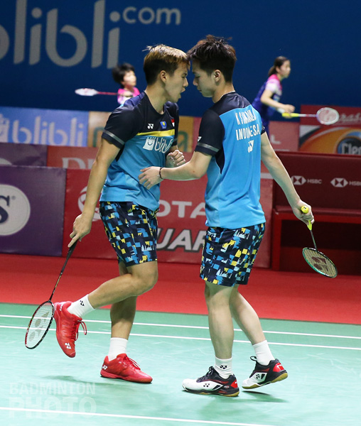 To round off a day of finals, Indonesians Selvanus Geh and Kevin Sanjaya Sukamuljo (pictured) upset second seed Chen Hung Ling and Lu Chia Pin. With the experienced Nova Widianto watching his former mixed adversary from the coach’s seat, Selvanus and Kevin were able to able to learn tips on how to deal with Chen’s game play. Chen and Lu might have had their comeback victory in the second game if it hadn’t for some forced drive errors from Chen.