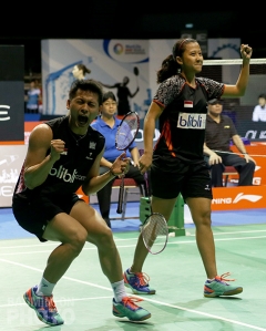 Ahmad/Natsir will face compatriots Riky Widianto / Puspita Richi Dili (pictured left) in the finals. The eighth-seeded Indonesians upset third-seeded Korean duo Ko Sung Hyun / Kim Ha Na 20-22, 21-17, 21-16 to reach their first ever Superseries final.