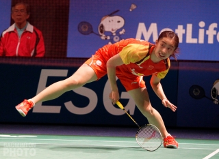 Nehwal was able to lead in the opening game because Wang became frustrated by the lack of inroads being made despite applying diligence. However, Wang Shixian (pictured) was drawing most of the crowd’s gasps and applause for her usual spectacular angle plays and swift cross net-shots. Only one or two crucial shots Wang hit an inch long of the lines was sufficient to hand over the first game 21-19 to the intelligent and plain vanilla strategy of the Indian. Further credit to the latter, Nehwal was an exceptional judge today of close shots there were outside the lines.