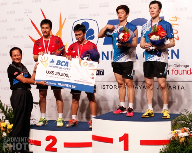 MD: Lee Yong Dae / Yoo Yeon Seong (KOR) [6] beat Mohammad Ahsan / Hendra Setiawan (INA) [1] 21-15, 21-17
