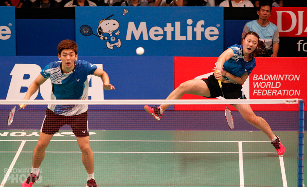 After beating the Olympic gold medallists on Wednesday, the new mixed doubles pairing from Indonesia was beaten by Lee Yong Dae / Shin Seung Chan (pictured) 18-21, 17-21 in the second round.