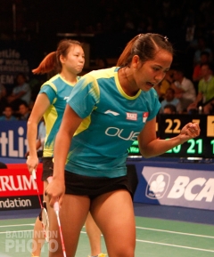 The 15th ranked pair from Singapore, Shinta Mulia Sari and Yao Lei (pictured) may yet make it to their first ever semi-final at the Superseries Premier level. It was a tight and intense match for them against Indonesian veterans Shendy Puspa Irawati and Vita Marissa but they pushed through to take it 22-20, 7-21, 25-23.