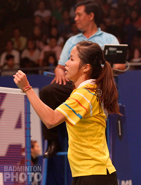 In the second game, despite leading the points most of the times, the Thai teen lost it eventually 19-21. On the third game, she struggled to bring back a good form, often trailing behind. But in the critical points, she managed to do well and won the match by prevailing 21-18 in the decider.