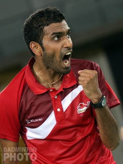 Rajiv Ouseph (pictured right) followed up the impressive opening with an equally mature performance as he outwitted his Indian opponent with calm and steady play, as Kashyap Parupalli (pictured left) was unwilling to commit to the longer rallies.