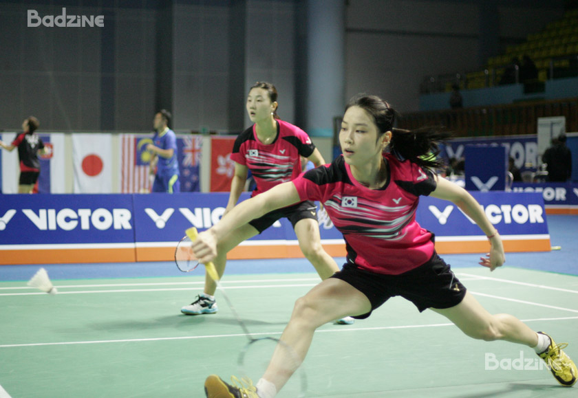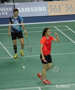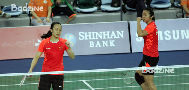 Another thriller followed with the women’s doubles match featuring the newly crowned World Champions Zhao Yunlei and Tian Qing (pictured top). The Chinese pair – who had lost to Jang and Eom Hye Won at last year’s Worlds – looked close to undergoing another upset against an on fire pair of Jang Ye Na, now with Kim So Young.