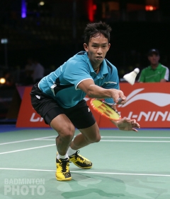 Next, Sattawat Pongnairat (pictured below) used his experience to put down Andrew D’Souza in just half an hour. Pongnairat has played three Superseries events this year, plus the World Championships, while D’Souza had played only one international match apart from the Commonwealth Games in 2014 and was no match for his opponent, who put the Americans up 2-0.