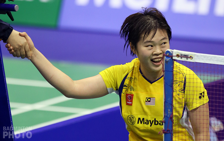 Malaysia’s Tee Jing Yi (pictured) surprised not only the crowd but herself as well when she eliminated Olympic silver medallist Wang Yihan 21-19, 14-21, 21-15. While world #2 Wang Shixian suffered the same fate as Yihan, beaten by Liu Xin in yet another 3-game match, Shixian is assured of a spot in the Superseries Finals to be held in Dubai, whereas Yihan can only go if her coaches deem Shixian or Li Xuerui unfit to compete.