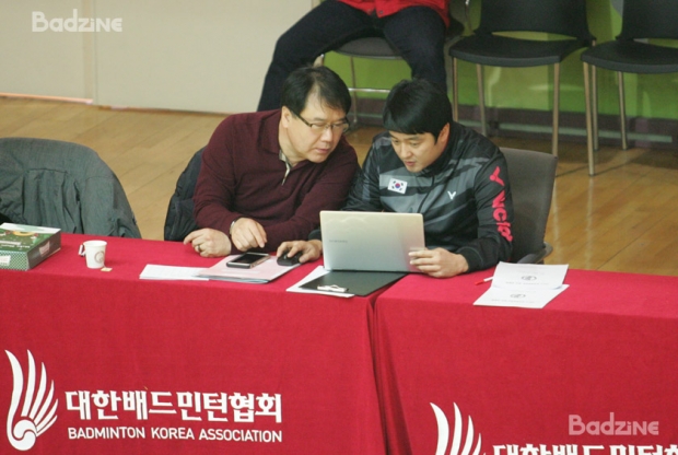 The doubles selection event was held at the regular training centre of the Samsung Electromechanics Badminton Team, which employs such stars as Lee Yong Dae, Kim Ha Na, Shin Seung Chan, and Kim Ki Jung. All of the national team coaches were present, with the show being run by Head Coach Lee Deuk Choon (pictured below, at left).