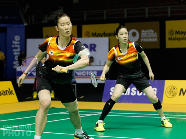 China’s Luo twins are the highest-seeded semi-finalists and will be taking on compatriots Ou/Yu. Meanwhile, Xia Huan and Tian Qing, in their first tournament, will be facing Korea’s Jang Ye Na / Jung Kyung Eun (pictured below), who are playing in their second tournament as a pair.