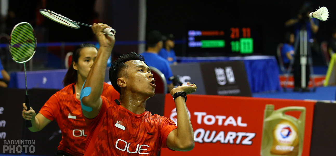 Singapore had a bad day too, with 2 of their best players out. 8th seed Derek Wong and mixed doubles 2nd seeds Danny Bawa Chrisnanta and Vanessa Neo (pictured bottom) became the other two seeds of the day shown the door by up-and-coming Chinese players, each of whom won their match in straight games.