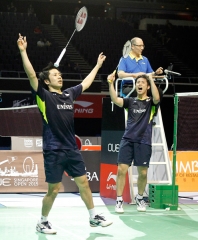 In the men’s doubles event, third seeds Hiroyuki Endo/ Kenichi Hayakawa (photo) were facing the in-form Danish pair of Mads Conrad-Petersen / Mads Pieler Kolding. The match stretched on to a rubber game with both pairs giving it their best to clinch every point. The first game was comfortably won by the Danish pair with a lot of errors on the Japanese side.