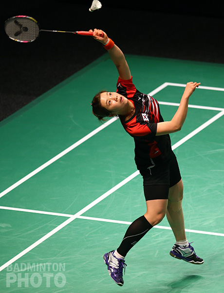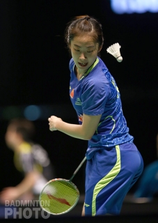 The match was much closer than the eventual score suggests, 21-19, 21-16. Bae bounced back to the same high quality she had in the first game until Wang again clawed back to lead at the next interval through sheer persistence. After this juncture, Bae continued to have long range stamina but, once at a loss as to what more she could possibly do, found that Wang’s speedier movement around the court and signature forehand cross court drop-shot now became a problem.