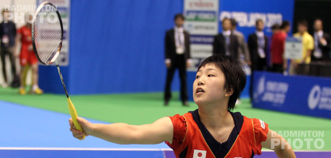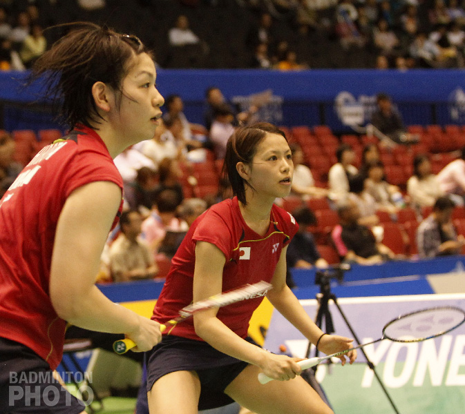 If both sides possess the strongest shield of the “iron wall” defense, then the deciding factor would be the spear that could hit the fastest and hardest. Both Japanese pairs of Yuki Fukushima / Sayaka Hirota (photo) and Shiho/Koharu demonstrated the principle perfectly, as rallies would become yin yang exchanges of attack and defense. Fukushima/Hirota’s spear proved to be the sharper of the duo as their attacks kept the shuttle down to the other side much more consistently.