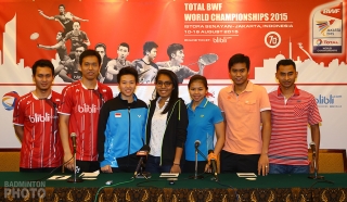 All five defending World Champions were on hand at Jakarta’s Sultan Hotel to answer questions from the press the day before play begins on the 2015 Total BWF World Championships. Most pointed to the Indonesian crowds and their potential to motivate, to make winning difficult, and to make this year’s competition memorable.