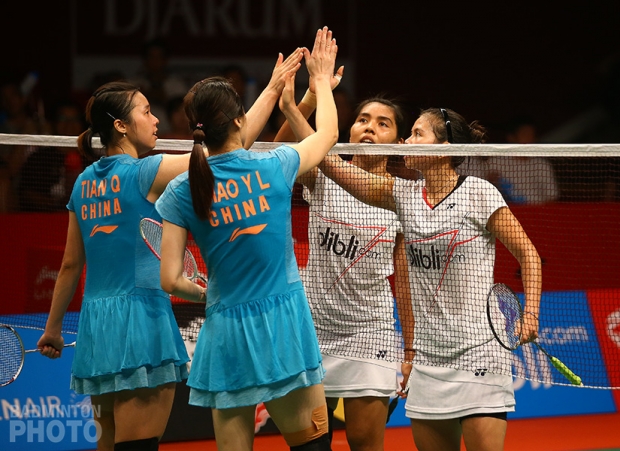 Three other home team semi-finalists had already proven unable to convert the thunderous cheers into victory, including the host nation’s other Asian Games gold medallists Greysia Polii and Nitya Krishinda Maheswari, who went down tamely to the defending World and Olympic champions Tian Qing and Zhao Yunlei (pictured bottom).