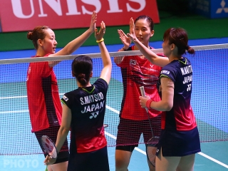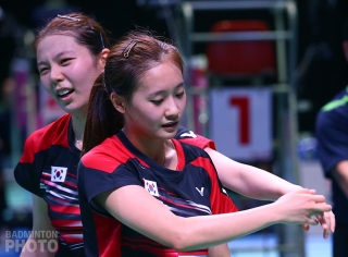 Not only did the sun finally decide to shine upon the gloomy Tokyo sky, but Japanese women shuttlers shone as bright in front of the fans who flocked to the Tokyo Metropolitan Gymnasium. The delighted crowd cheered loudly applauding good rallies by all players, regardless of nationality. Yet the biggest cheers went to their women’s pair Shizuka Matsuo / Mami Naito, who delivered a great performance that was almost, but not quite, matched by their Korean opponents Jang Ye Na / Lee So Hee (pictured), as the spectators were on the edge of their seats.