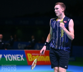 Viktor Axelsen (pictured below) fought a hard battle against singles specialist Lee Dong Keun, two games that last 53 minutes. Viktor celebrated victory by throwing his racket to the delighted crowd.
