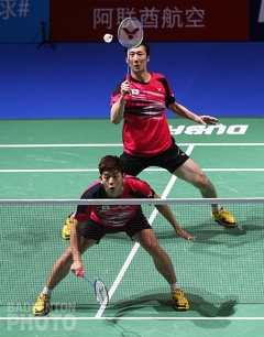 Every competition happens to now be similar for Lee Yong Dae and Yoo Yeon Seong (pictured), as the Koreans are completely dominating their category, leaving only devastated opponents after neither the world #4 nor the world #2 could find a reliable solution to counter the Koreans, who seem perfect in every part of their game. On Thursday, Lee and Yoo humbled the reigning World Champions, beating them in just two games, while the defending champions remained very consistent and coherent from the beginning to the very end.