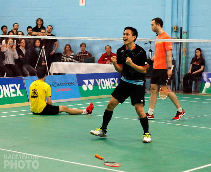 MD: Adrian Liu / Derrick Ng [1] beat Philippe Charron / Toby Ng [3/4] 21-19, 21-18
