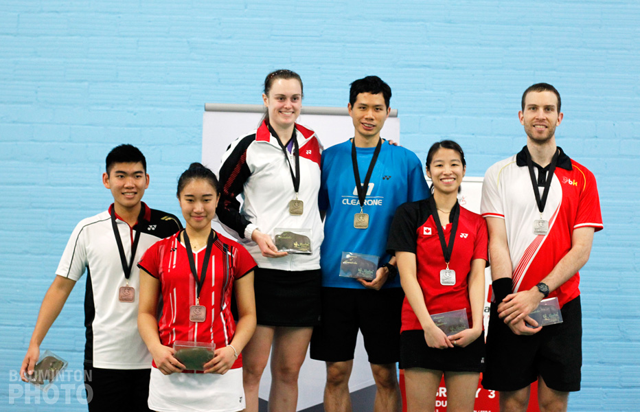 XD: Toby Ng / Alex Bruce [1] beat Philippe Charron / Phyllis Chan [3/4] 21-16, 21-23, 21-18