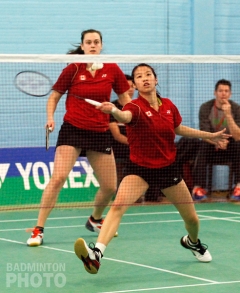 Next, Rachel Honderich and Michelle Li (pictured top) were back on court but this time as a duo against first seeds and three-time champions Alex Bruce and Phyllis Chan (pictured below). The challengers wobbled at first but gradually improved their level of play to topple the first seeds with the deciding game going 21-10 in their favour.