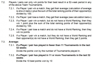 So far, everything makes sense. There are some who feel awarding points for first-round losses is unfair but others point out that the risk of getting zero money and zero ranking points is too severe for a sport with so many cash-strapped athletes. Not to mention that a ‘first’ round is often only reachable by winning a match or three on qualifying day and ought therefore to be recognized. Again, it’s not a perfect system but it seems to be governed by logic and fairness.