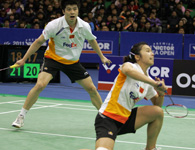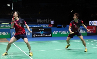 Lee/Yoo made it into quarter-finals after finishing a dramatic and dangerous 23-25, 22-20, 21-17 win. It was China’s Liu Cheng / Lu Kai – whom the world #1s had beaten last week, as well as in two Superseries finals last year – who made them struggle on Thursday night. Liu and Lu were very aggressive from the beginning while the Koreans were not ready yet to play the fast game.