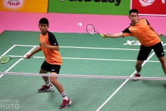 Men’s doubles is without its top seed as Marcus Fernaldi Gideon / Kevin Sanjaya Sukamuljo (pictured bottom) took out Chai Biao / Hong Wei in three close games. The quarter-finals features three pairs of pairs who are jockeying for position in the Rio race. Gideon and Sukamuljo may be too far outside the top 8 to have a chance but Ko/Shin and Kim/Kim of Korea are still duelling to be the second Korean pair while Chen/Wang still have a chance of reeling in Lee/Tsai to become Chinese Taipei’s Olympic pair.
