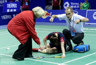 Next up, the world #1 pairing of Misaki Matsutomo / Ayaka Takahashi, who had also beaten their Korean opponents just last week in Sakaide, just couldn’t find that winning formula and went down in three. With the Koreans up 2-0, Bae Yeon Ju struggled at the beginning of her second game against Akane Yamaguchi and finally had to call it quits with what the Yonhap News Agency later reported as an ankle injury.