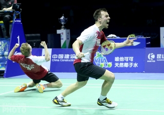 Jan Jorgensen had been rested for this tie, in favour of the quarter-final hero Hans-Kristian Vittinghus, who came through in the clutch to end the Kunshan winning streak by Iskandar Zulkarnain Zainuddin. Former world #1 Koo Kien Keat / Tan Boon Heong looked strong as they took the first game from the lower-ranked Kim Astrup / Anders Skaarup Rasmussen but the Danes dominated the 2nd and 3rd game to take the match and even the tie.
