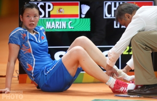 China’s former dominance of the women’s singles came to an end when Sindhu defeated Wang Yihan in the quarter-finals, and the injured Li Xuerui (pictured) first lost out to Marin in the semis then withdrew from the bronze medal match to mark the second time China has come away empty-handed since 1996.