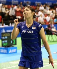 The main upset match was between former Olympian Sayaka Sato (pictured) and Taiwan’s world #7 Tai Tzu Ying. Sato was very nervous in the first game but Tai Tzu Ying looked tired. Sato caught Tai at 13 points and lead as 20-17.