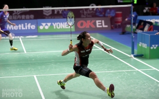 Not quite as long was the quarter-final between Sung Ji Hyun and Tai Tzu Ying (pictured below). The 4th and 5th seeds are so evenly matched that their head-to-head record going into the match on Friday was a perfect 8-8, counting the final of the 2013 Universiade.