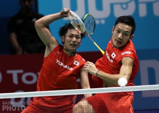 MD: Takeshi Kamura / Keigo Sonoda (JPN) beat Kim Gi Jung / Yoo Yeon Seong (KOR) 21-15, 21-16