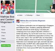 Badminton Denmark announced yesterday that it had been forced to issue an apology to former world #1 Mathias Boe / Carsten Mogensen after staff there made an administrative error that resulted in the top Danish pair not having been entered in the upcoming Malaysia Open Superseries Premier. In an article posted in Danish on the national body’s website, Boe announced that he and Mogensen had accepted Badminton Denmark’s apology but criticized the Badminton World Federation (BWF) rules that require players’ entries to be submitted by national associations, rather than directly by the players themselves.