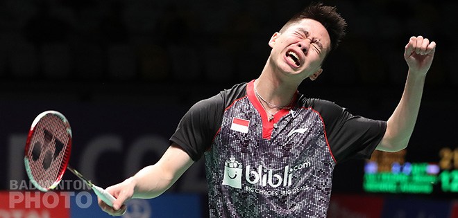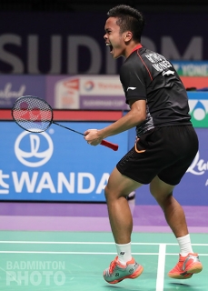 The full house was sent into a frenzy when one game down in the men’s singles, Anthony Ginting (photo) clawed back to win it 13-21, 21-17, 21-14. The hallmark of the amazing resurgence was anticipating what appeared to be sure kills at the net by Viktor Axelsen and possessing the composed racquet skills to make the shuttle head away from the striker without any backswing and within a fraction of a second.