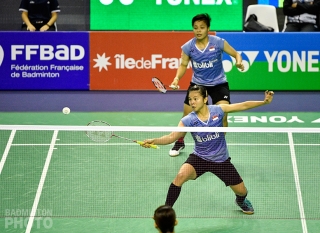 Christinna Pedersen and Mathias Christiansen (pictured right) had a disappointing run in their home tournament, losing out in the very first round to Zhang Nan and Li Yinhui but they were certainly quickly forgiven, as they are having an incredible run so far at the Yonex French Open Superseries, in only their second tournament as a pair. The two Danes were engaged in a very complicated first game against Thailand’s Dechapol Puavaranukroh and Puttita Supajirakul (pictured below), trailing 0-8 at the start.