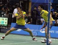 The Koreans kept it close in the first game but as the next two games unfolded, they just became more and more dominant, breaking down the Indonesian defense that had been so solid in the opener. The visitors looked more confident as the crowd grew quiet and when the dust cleared, the two Sugiartos had a mere 3 points in the deciding game and the Koreans were celebrating.