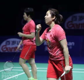 In the deciding game, Chen Qingchen and Jia Yifan (pictured) just had all the answers to the Korean attacking game and Kim and Lee were visibly frustrated when they couldn’t take advantage of some excellent opportunities to finish rallies. The Chinese pair surged ahead from an early 3-7 deficit and owned the court for the rest of the game, taking their second Superseries title of the year to add to their World Championship crown.