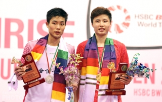 The men’s singles final saw Chou Tien Chen settle for second place for the second straight year. Last year, he fell to eventual World Champion Viktor Axelsen and this year, it was China’s Shi Yuqi (pictured below) doing the honours. For Shi, it was the first title in over a year but interestingly, it was only his second career match over Chou, although both players spent most of last year in the world’s top ten.