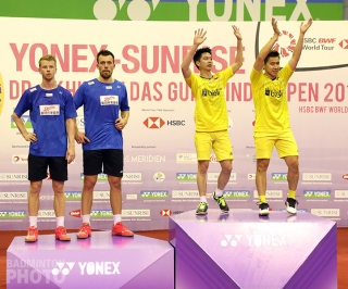 MD: Marcus Fernaldi Gideon / Kevin Sanjaya Sukamuljo (INA) [1] beat Kim Astrup / Anders Skaarup Rasmussen (DEN) [4] 21-14, 21-16