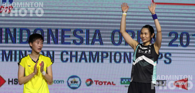 With the support from Indonesian fans, Tai Tzu Ying won her 9th straight victory over Chen Yufei and her 5th straight 2018 title, while the day ended with a 4th for Indonesia’s men’s doubles #1.