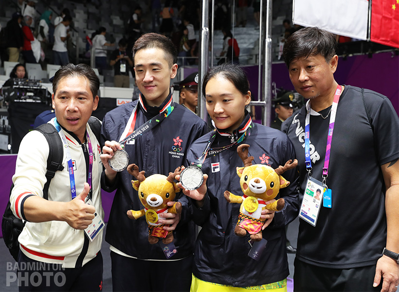 After the match, Tse Ying Suet (pictured left, with Tang Chun Man and their coaches) admitted that she appeared under her best performance due to perceived fatigue after the semi-final match the previous day: “We didn’t have the performance today because we have played some tight matches and it’s really tiring. I could not sleep because I was too excited about the final,” said Tse.