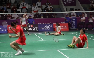 First, Chen Qingchen and Jia Yifan (pictured right) won over Misaki Matsutomo and Ayaka Takahashi from Japan. The 2017 World Champions managed to claim the women’s doubles gold medal after winning 22-20, 22-20 in an hour-long match. Chen/Jia’s appearance in the final round deserves a thumbs up. They managed to use their defense to set up attacks that were too difficult for their opponents to penetrate.